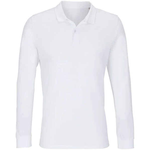 Универсальная белая рубашка поло унисекс Planet LSL с длинным рукавом. Изделие выполнено из органического хлопка.