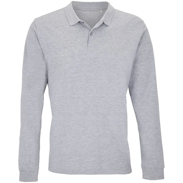 Универсальная рубашка поло цвета серый меланж Planet LSL с длинным рукавом. Изделие выполнено из органического хлопка.