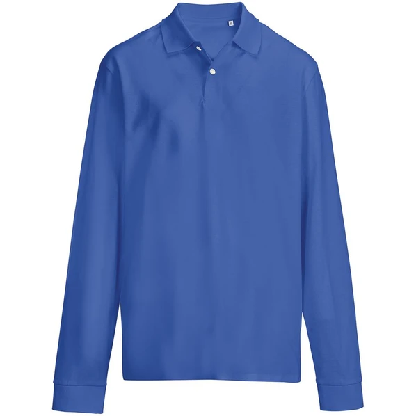 Плотная ярко-синяя рубашка поло унисекс с длинным рукавом из гребенного хлопка. Благодаря тонким и длинным волокнам хлопка материал отличается гладкостью, ровностью и прочностью, отлично сохраняет форму, не деформируется и не выцветает при стирке.