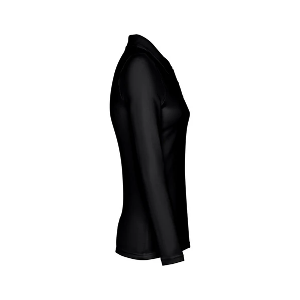 Женская черная рубашка поло с длинным рукавом из хлопковой ткани-пике. Полотно футболки упругое и гладкое благодаря обработке ферментами enzyme wash и сохраняет форму при стирке.