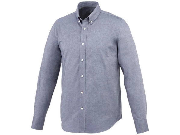 Рубашка «Elevate Vaillant» мужская выполнена из натуральной ткани с характерным мелким меланжем синего цвета. Стандартный крой хорошо смотрится на любом типе фигуры. Длинный рукав оснащен удобным разрезом в области уплотненной манжеты с двумя пуговицами. Классический воротник имеет сатиновую вставку в форме ленты, которая защищает кожу шеи от натирания.