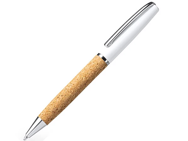 Шариковая ручка с поворотным стержнем, корпус из натуральной пробки и стали. Хромированные детали.