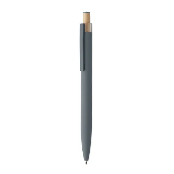 Ручка шариковая из переработанного алюминия с бамбуковой кнопкой, серая