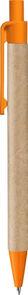 Бумажная оранжевая ручка Viva. Наконечник, клип и кнопка пластиковые. Стержень замене не подлежит. Широкий клип позволяет нанести логотип с помощью тампопечати.