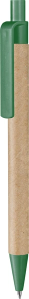 Бумажная зеленая ручка Viva. Наконечник, клип и кнопка пластиковые. Стержень замене не подлежит. Широкий клип позволяет нанести логотип с помощью тампопечати.