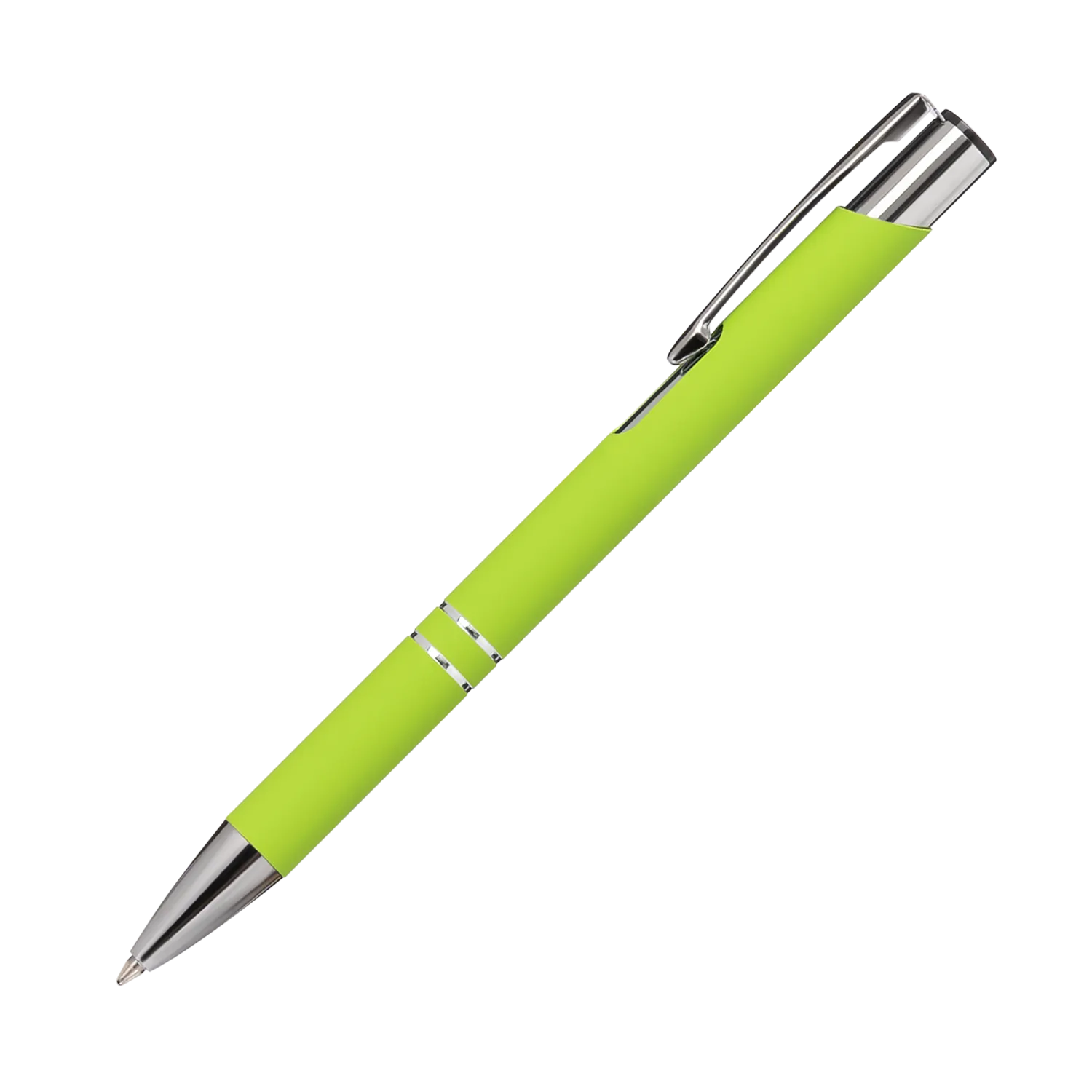 Классическая салатовая ручка в шелковистом покрытии Soft Touch станет прекрасным инструментом для письма. Хромированные детали – два декоративных кольца и функциональный надежный клип.