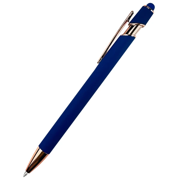 Brina — синяя ручка, в которой холодный блеск металла встречается с тёплым сиянием розового золота. Идеальный баланс эстетики и функциональности. Корпус из прочного металла с покрытием розовое золото — это заявление о безупречном вкусе, олицетворяющем утончённую силу.