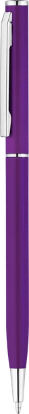 Классическая серебристо-фиолетовая шариковая ручка Hilton в металлическом корпусе с функциональным клипом. Корпус металлизированный матовый. Наконечник, кольцо и верхняя часть пластиковые, хромированные.