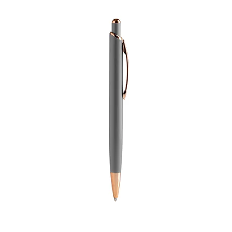 Шариковая серебристая ручка Perla с матовой металлической структурой и деталями с медной отделкой.