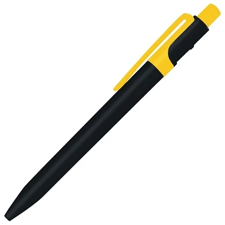 Шариковая черно-желтая ручка с нажимным механизмом. Модель имеет матовый корпус, который идеально подойдет для нанесения вашей корпоративной символики.