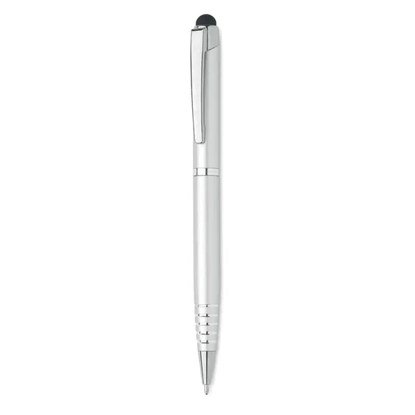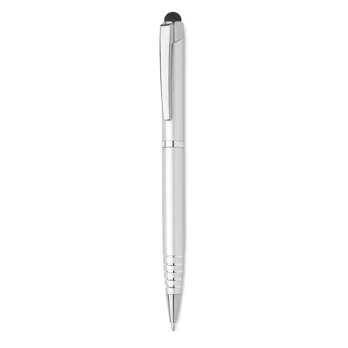 Минималистичная и удобная серебряная ручка с функцией стилуса. Корпус изготовлен из переработанного алюминия — устойчивое решение для повседневной работы. Оснащена синими чернилами и мягким наконечником для использования на сенсорных экранах.