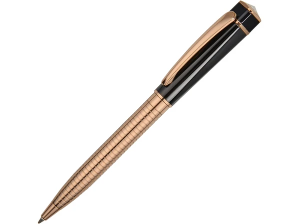 Элегантная металлическая ручка для деловых мужчин и бизнес-леди. Дизайн изделия гармонично сочетает чёрный наконечник с золотым основанием. Толстый клип придаёт особый шарм. Поставляется в фирменном футляре с мягким ложементом.