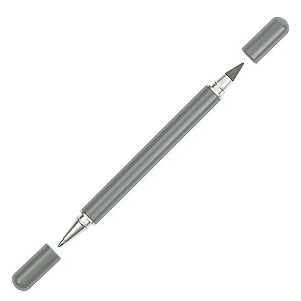 Функциональная серая шариковая ручка Clicra Eternity. Стильный аксессуар 2в1: с одной стороны - ручка, с другой - вечный карандаш, который практически невозможно исписать!