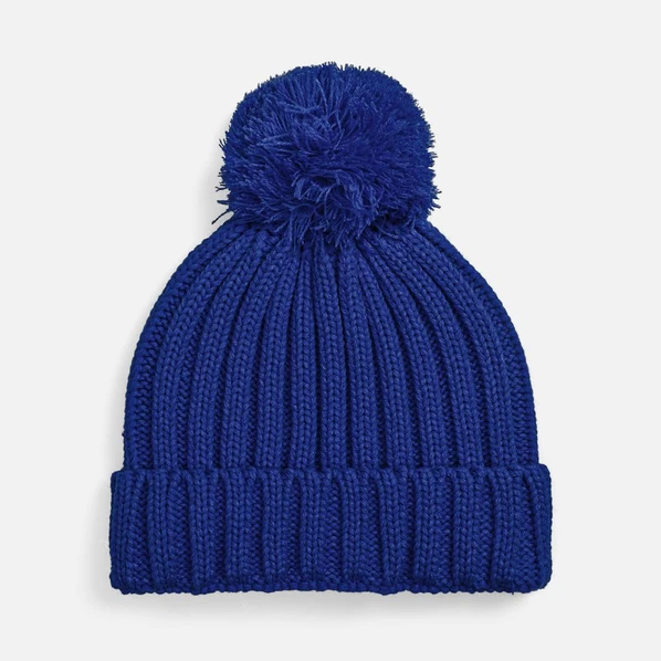 Синяя шапка HappyGo с отворотом выполнена крупной резинкой из мягкой акриловой пряжи, которая создает объем и дарит тепло. Пышный помпон сразу создает запоминающийся зимний образ, добавляя ему игривости и легкости.