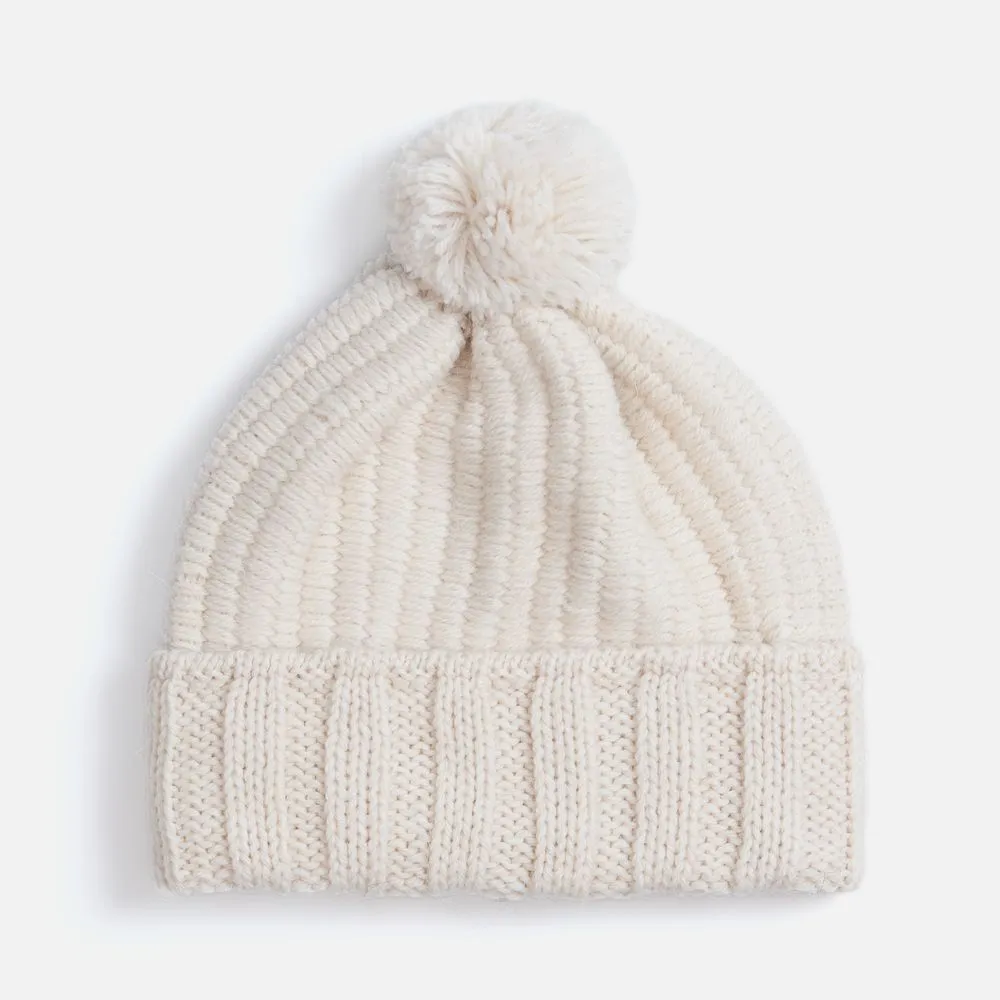 Однослойная белая шапка Frissonelle из полушерстяной пряжи рельефной вязки сохраняет тепло без лишней тяжести.