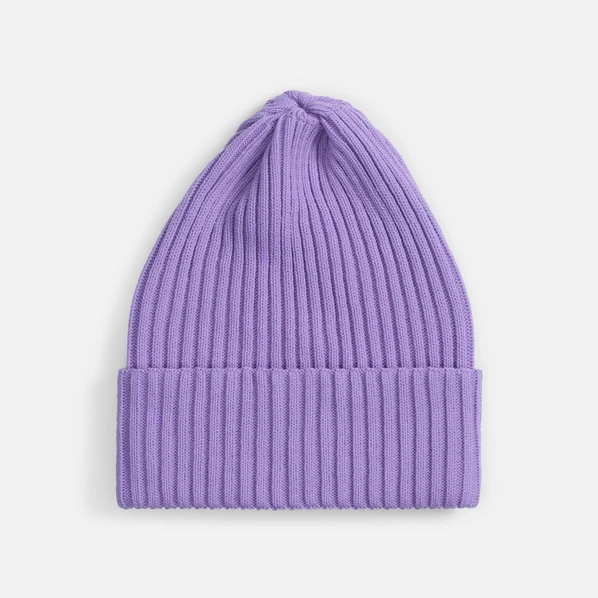 Стильная сиреневая шапка для тех, кто предпочитает держать уши в тепле — 3 слоя трикотажа точно не дадут им замерзнуть. Однослойная шапка фактурной вязки с двойным отворотом.