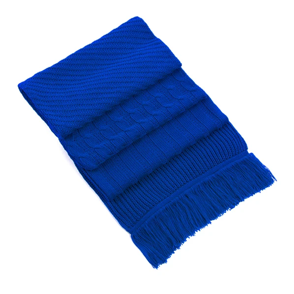 Шарф фактурный синего цвета с различными видами вязки и бахромой. Бахрома с двух сторон.