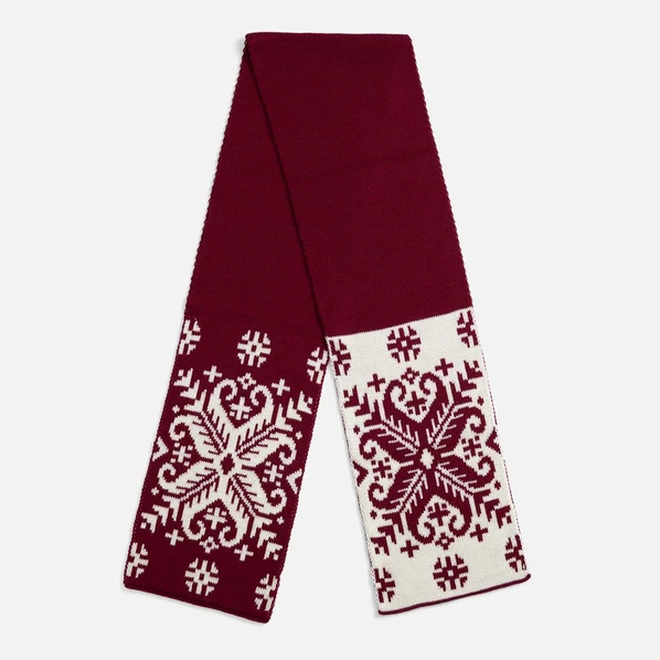 Красно-белый шарф Wintertude выполнен из качественной полушерстяной пряжи в двух гармоничных цветах, которые подчеркивают сложный жаккардовый рисунок. Двухслойная структура обеспечивает дополнительное тепло и объем, сохраняя при этом легкость и мягкость.