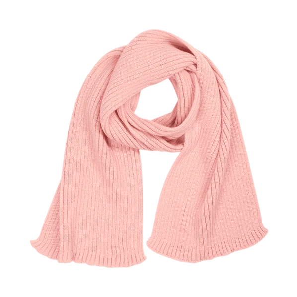 Фактурный розовый шарф Forges. Резинка 2х2 из объемной пряжи. Он сделан из приятного на ощупь материала (акрил и полиэстер софт).