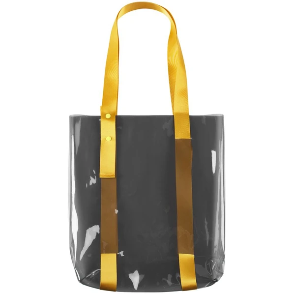 Прозрачные сумки никогда не выйдут из моды. А цветные желтые ручки легко впишутся в брендбук или — дополненные подходящим нанесением — точно передадут настроение, которое хотелось бы транслировать.