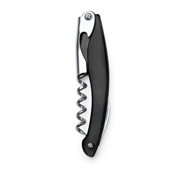 Классический черный штопор Garnac выполнен из нержавеющей стали со складным лезвием и открывалкой для бутылок.