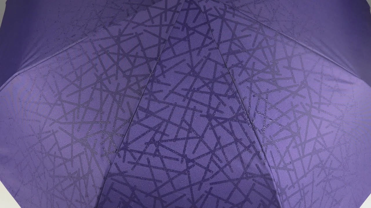 Функциональный черный зонт Magic без вычурных деталей. Скромный с виду дизайн имеет оригинальную особенность — проявляющийся рисунок. При намокании купол украшает геометрический узор. После высыхания он исчезает.