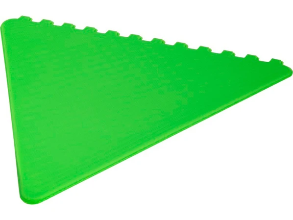 Треугольный скребок зеленого цвета для удаления льда с лобового стекла, имеющий большую площадь для декорирования. Сделано в Великобритании из переработанного полистирольной пластмассы.