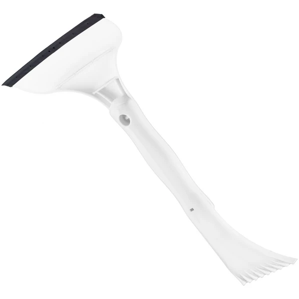 Скребок белого цвета Water Low состоит из двух половинок: скребка с усиленной кромкой и зубьями-ледорубами и водосгона с упругой резиновой накладкой. Части скребка можно разъединить, чтобы разделить уборку снега с пассажиром или работать двумя руками.