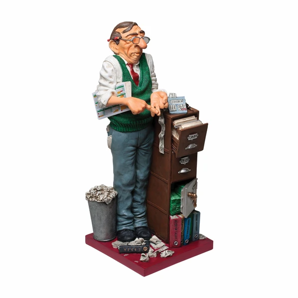 Великолепный подарок бухгалтеру или финансисту – скульптура работника, занятого подсчетами и оформлением документов. Работа знаменитого аргентинского художника заставит улыбнуться самого мрачного сотрудника бухгалтерии. Композиция выполнена из прочного материала, имеет яркую окраску.