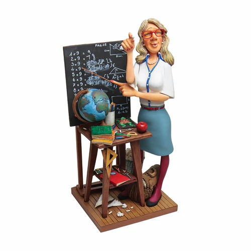 Статуэтка «Учительница» от известного аргентинского мастера Гильермо Форчино станет отличным подарком для любого работника педагогической сферы. Она изготовлена из полистоуна, изображает учительницу геометрии за работой. Статуэтка яркая, разноцветная, выполнена в нарочито гротескном стиле, но очень детализированная. Зритель может увидеть: