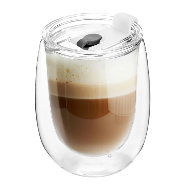 Стакан белый стеклянный Mango с двойными стенками и крышкой выполнен из прочного термостойкого боросиликатного стекла, которое позволяет наливать горячие напитки и не обжигать руки за счет двойных стенок.
