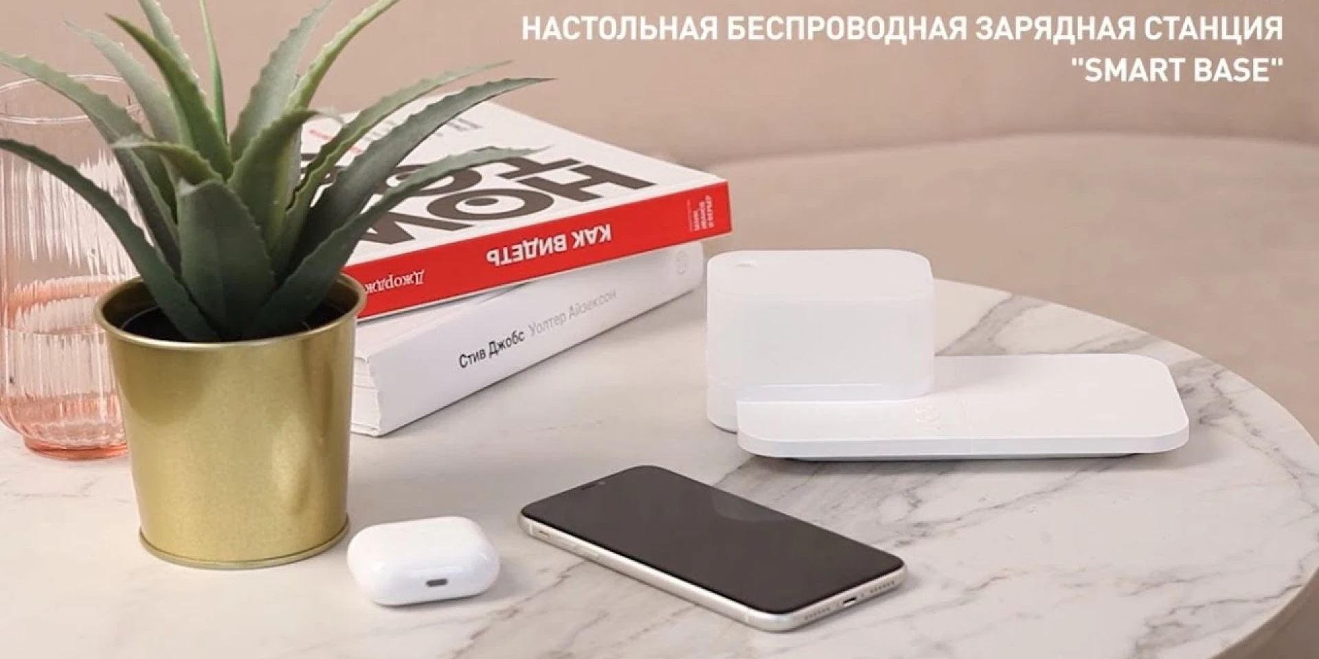 Smart Base сочетает популярные функции: зарядка, подсветка и увлажнитель. Рекомендуется подключение через сетевой адаптер номиналом не менее 5V/2A, чтобы в полной мере использовать характеристики устройства. Лампа работает в трех режимах — теплый, холодный и сбалансированный свет, яркость можно регулировать. Два режима работы увлажнителя 8 мл/час и 16 мл/час.