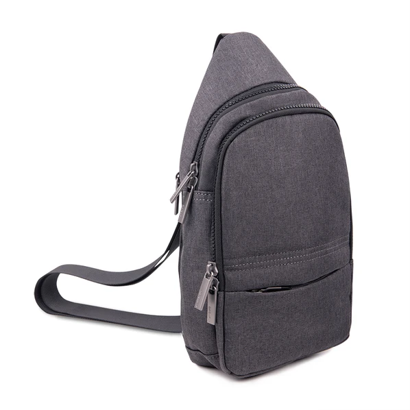 Симметричная компактная сумка-рюкзак cross body на 1-й лямке из коллекции CORE. Oбъём около 5 литров. Голубой подклад из нейлона, цвет близкий к PANTONE 292 C. Цвет основного материала близкий к PANTONE 7540 C.