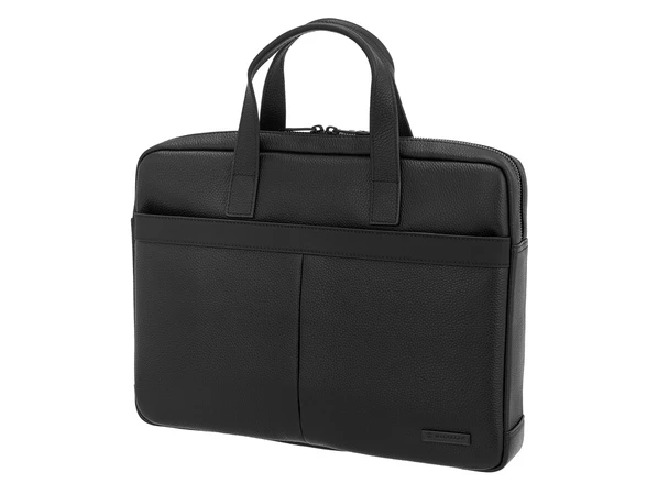 Стильная черная сумка Santiago из натуральной кожи. Конструкция изделия продумана для переноски ноутбука.
