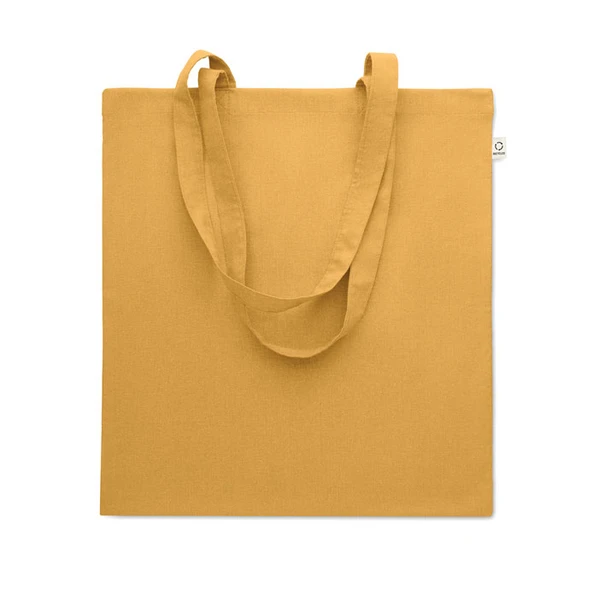 Оранжевая сумка для покупок из переработанного хлопка (70%) и RPET(30%) с длинными ручками.