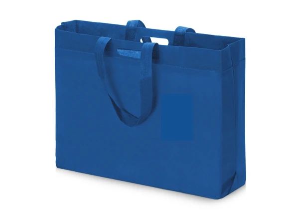 Практичная вместительная синяя сумка Scope с двумя видами ручек — вырубными для ношения в руках и длинными для ношения на плече. Обладает увеличенной вместимостью благодаря вшитому клину на дне и по бокам.