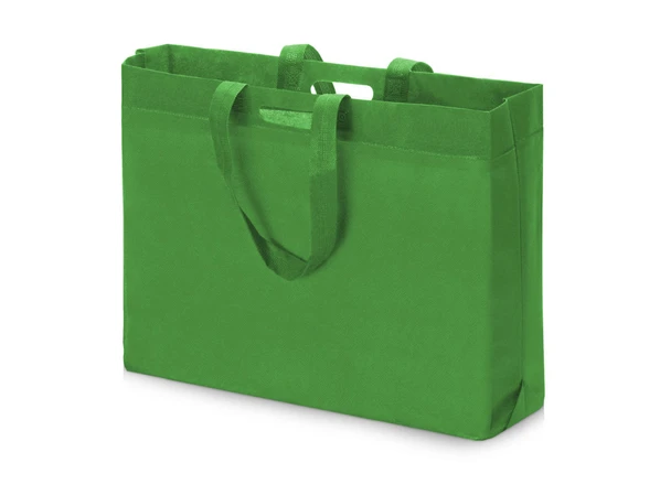 Легкая и вместительная зеленая сумка удобна в использовании благодаря двум вариантам ношения — в руках с помощью вырубной ручки , и на плече с помощью лямок.