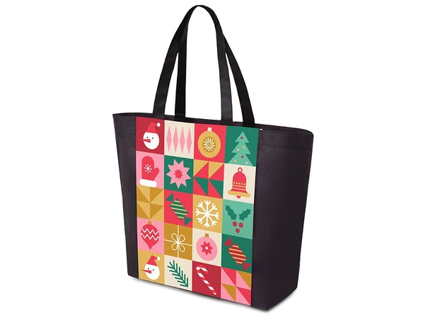 Практичная прочная разноцветная сумка-шопер с донной складкой и ручкой из нетканого PET материала.