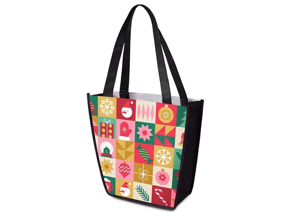 Практичная прочная разноцветная сумка-шопер с донной складкой и ручкой из нетканого PET материала.