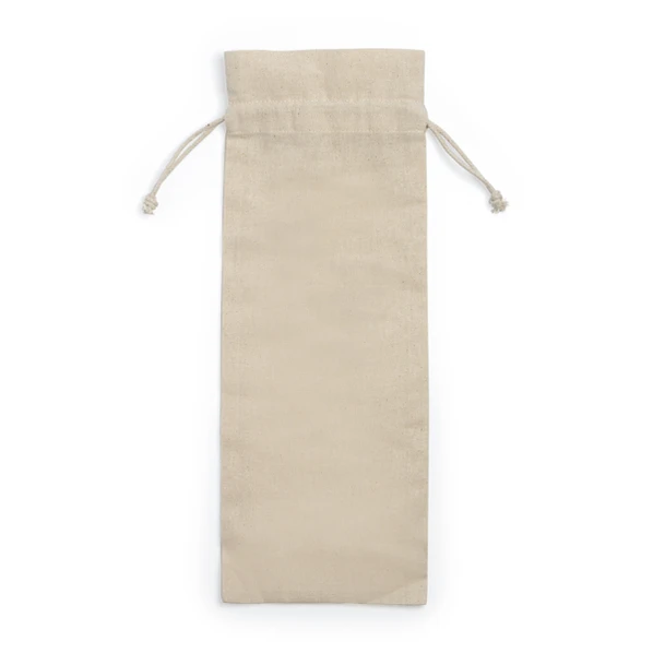 Бежевая сумка на завязках из хлопка плотностью 120 г/м². Идеально подходит для бутылок или термосов.