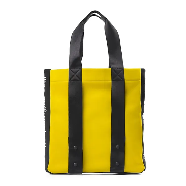 Желтая сумка с возможностью крепления объемных вещей к боковой части (полотенце, коврик, плед). Выполнена из неопрена – легкого, гибкого и прочного материала. Удобный помощник в разных ситуациях – на пляжном отдыхе, во время шопинга или городских прогулок. Внутри имеется специальный карман для хранения ценных вещей.