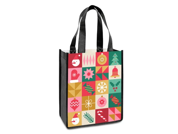 Вместительная сумка для шоппинга или промомероприятий. Текстурная поверхность нетканого PET-материала делает её тактильно приятной и добавляет рельефа напечатанному рисунку.