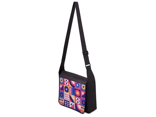 Сумка из нетканого PET материала с регулируемой ручкой, черная / разноцветная - фото № 1