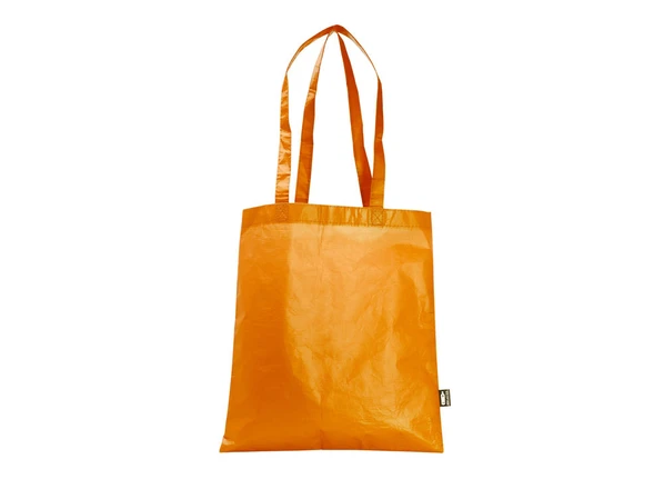 Многоразовая оранжевая сумка Phoca с матовой ламинированной отделкой. Изготовлена из прочного RPET с усиленными ручками.