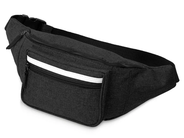 Черная сумка на пояс из плотного полиэстера. Наружный карман и основное отделение на молнии. Широкий ремень для дополнительного удобства.