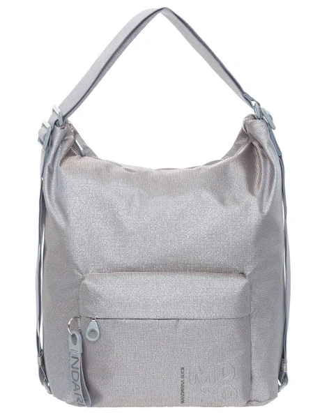 Серая сумка-рюкзак выполнена из уникального полиэстера Mitrix, поверхность которого обладает интересным 3D-эффектом. В материал вплетены мерцающие металлические нити: они придают ткани максимальную прочность и неповторимый радужный внешний вид.