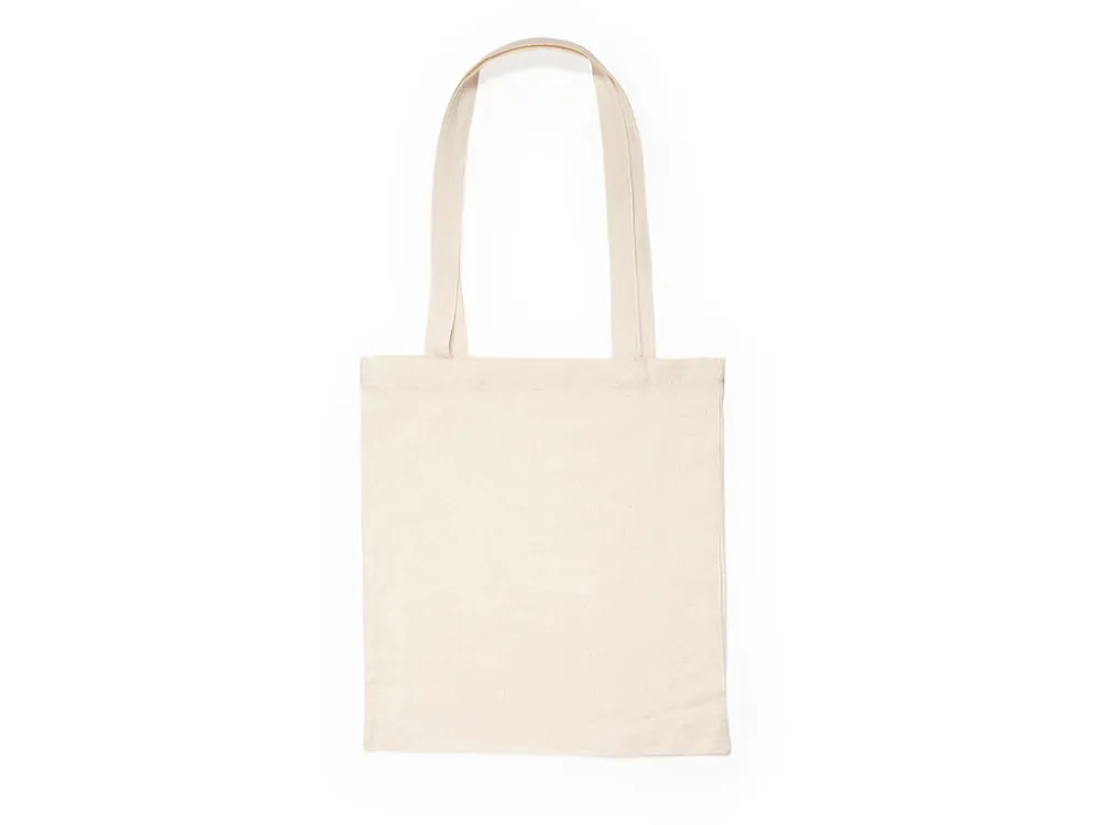 Стильная бежевая 100% эко-сумка для покупок из хлопка плотностью 180 г/м² натурального цвета, с ручками длиной 70 см.