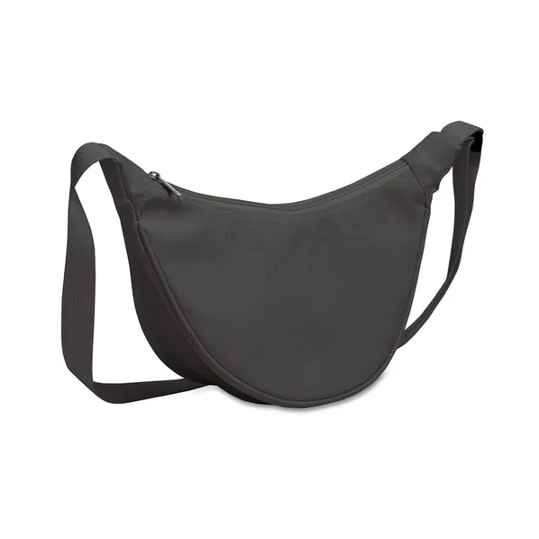 Стильная серая сумка кроссбоди в форме полумесяца из полиэстера 400D Oxford на подкладке 210D RPET. Один основной карман на молнии и 2 внутренних кармана.