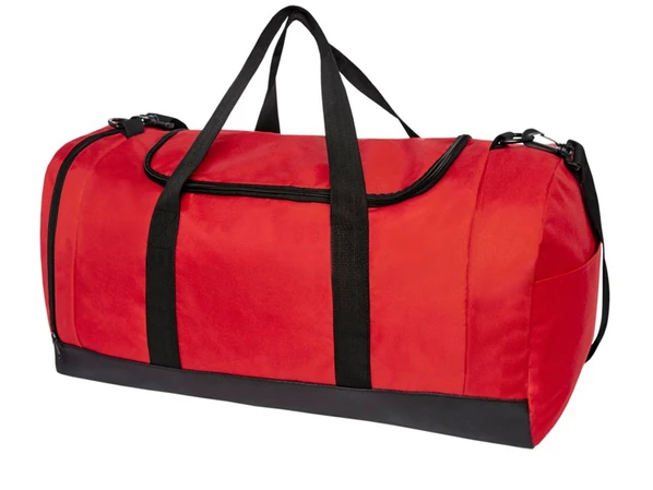 Спортивная сумка красного цвета Steps. Модель с большим главным отделением и укрепленной основной панелью. Оснащена расширяющимся отделением для влажных/сухих вещей со вставкой из сетки и съемным плечевым ремнем со смягчающей прокладкой.
