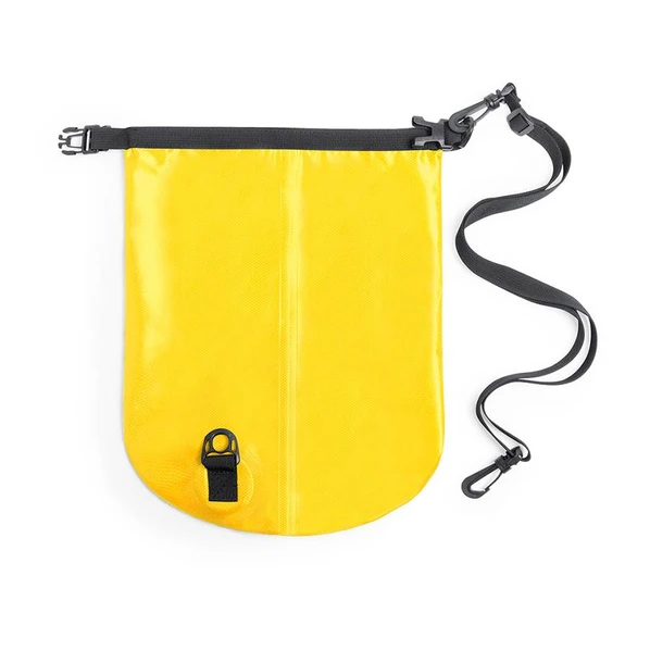 Водонепроницаемая желтая сумка-рюкзак из мягкого и прочного рипстопа. Длина 36 см, диаметр 18,5 см. С водонепроницаемой защитной крышкой.